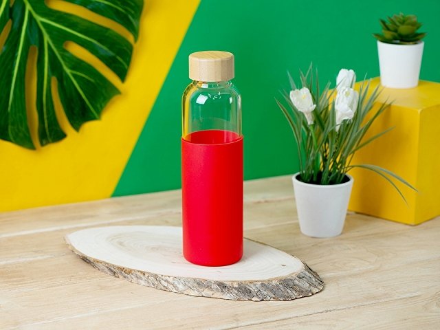 Стеклянная бутылка для воды в силиконовом чехле Refine |
