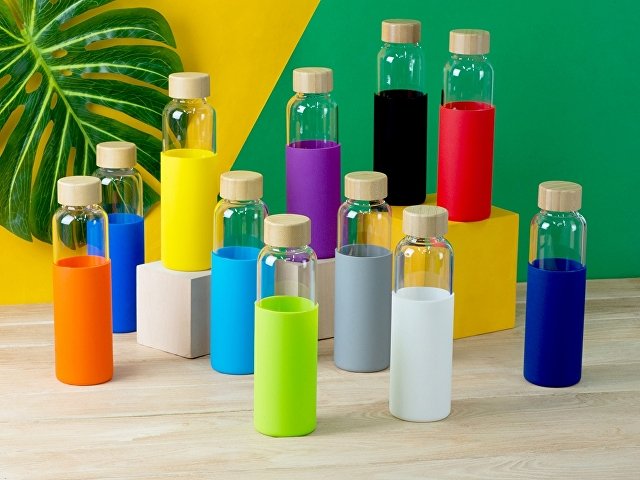 Стеклянная бутылка для воды в силиконовом чехле Refine |