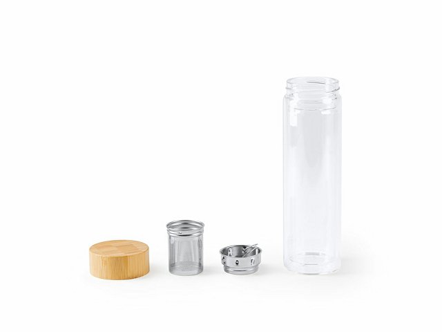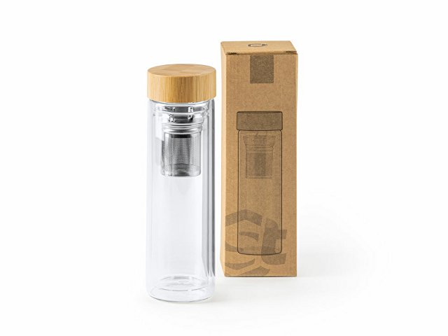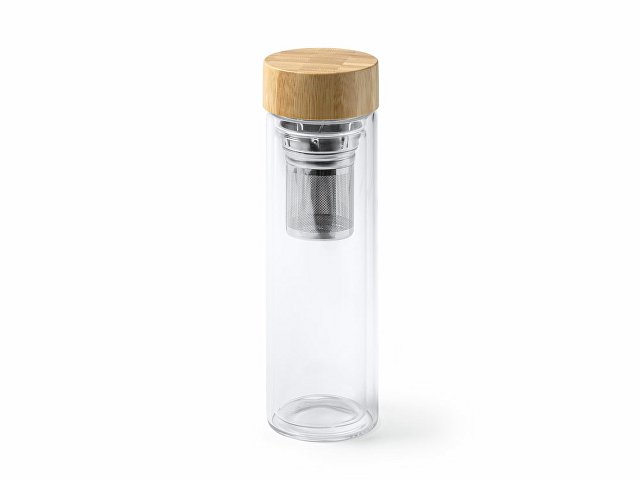 Бутылка из боросиликатного стекла с двойными стенками и бамбуковой крышкой. Включает ситечко для заваривания чая, так что вы можете взять его с собой куда угодно. Объем 420 мл. |