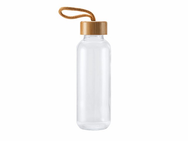 Стеклянная бутылка 450 мл с бамбуковой крышкой и ремешком для переноски с натуральной отделкой. Поставляется в дизайнерской коробке. |