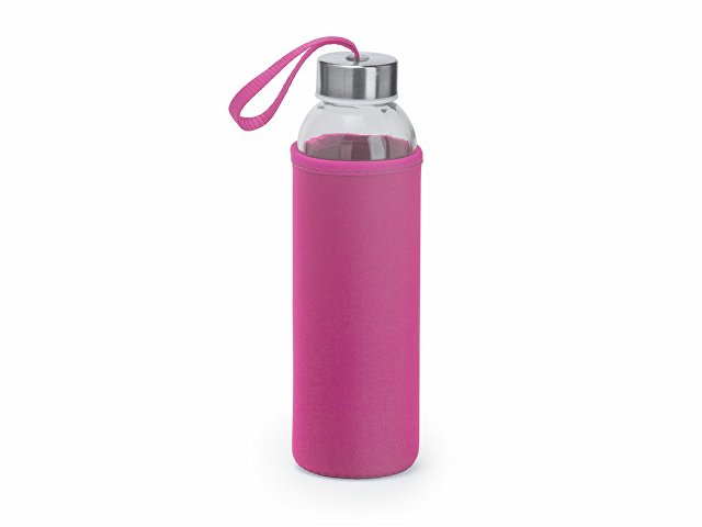 Стеклянная бутылка емкостью 500 мл, чехол из неопрена в сочетании с цветным ремешком для переноски. |