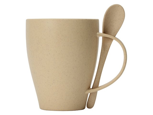 Кружка Nina состоит из смеси ПП-пластика (50%) и переработанной пшеницы (50%), что делает ее настоящим экомерчем. Поверхность кружки имеет приятный бежевый оттенок с небольшими вкраплениями-точками темно-серого цвета, которые только подчеркивают природное происхождение Nina.