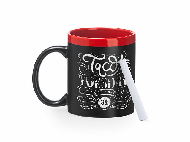 Кружка с покрытием для рисования мелом объемом 350 мл. Mел в комплекте. Поставляется в белой коробке. |