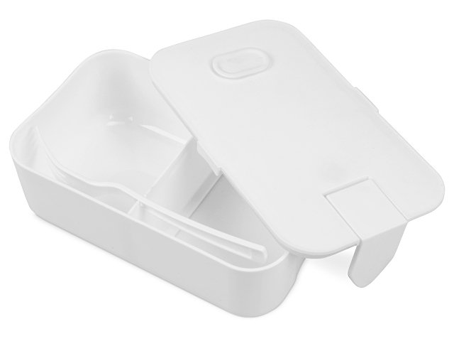 Ланч-бокс Neo можно брать с собой на работу, в школу, университет и командировки. Внутри прочной пластиковой емкости находятся снимаемая перегородка и вилка. Крышка с клапаном препятствует выпадению продуктов из бокса. Чтобы облегчить открытие контейнера, сначала выпустите воздух из него, потянув за силиконовый клапан на крышке. Деталь для фиксации крышки контейнера выполняет дополнительную функцию подставки для телефона, что особенно понравится тем, кто привык смотреть видео или читать книги во время перекуса. Ланч-бокс Neo можно разогревать в микроволновой печи, предварительно сняв крышку контейнера. Также разрешается использовать в посудомоечной машине и морозильной камере.
