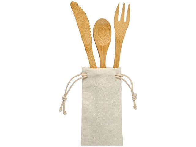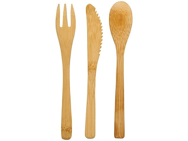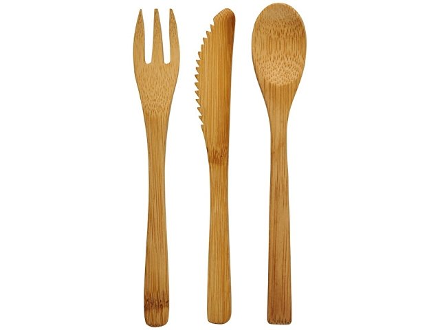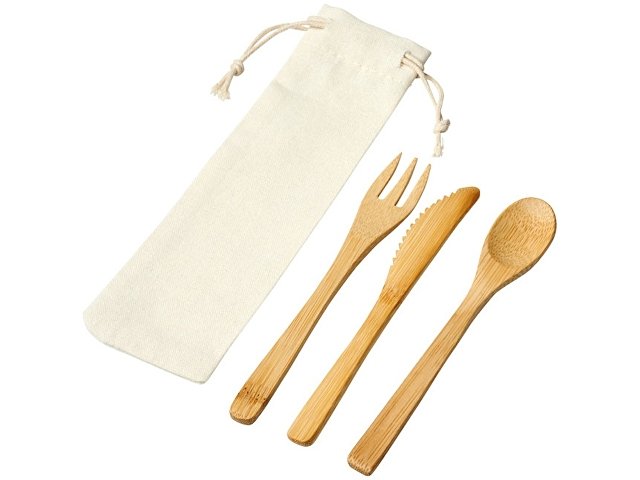 Набор столовых приборов Celuk из бамбука. Набор столовых приборов из бамбука состоит из вилки, ножа и ложки. Поставляется в нетканом мешочке. Бамбук. |