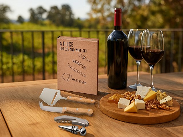 Премиальный набор для сыра и вина Reze— идеальный подарок для гурманов и ценителей изысканных вечеров. В стильной упаковке-книжке вы найдёте 4 инструмента: нож и слайсер для сыра, штопор и винную пробку. Комбинация нержавеющей стали и деревянных ручек придаёт элегантности и долговечности. Стильно, практично, со вкусом! |