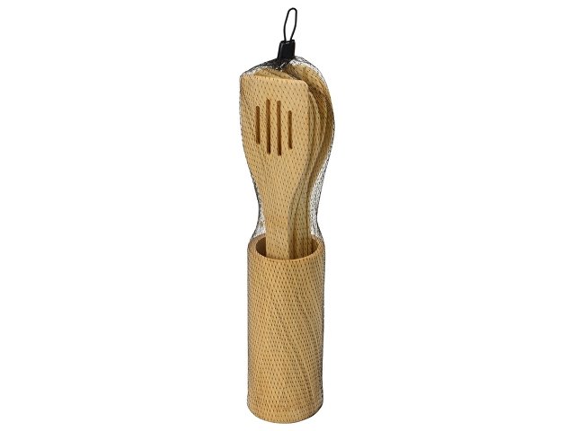 В набор входят лопатки и ложки, необходимые для приготовления различных блюд. С помощью удобной подставки из бамбука, которая идет в комплекте, принадлежности всегда будут под рукой. |