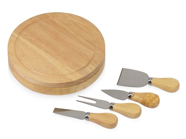 Подарочный набор для сыра в деревянной упаковке включает в себя три вида ножей и одну вилку. С помощью приборов можно нарезать сыры разных сортов. Набор упакован в деревянную подарочную коробку, которую можно использовать для хранения этих инструментов. Удобный поворотный механизм позволяет использовать крышку в качестве разделочной доски. Специальные выемки в коробке фиксируют приборы в безопасном положении.