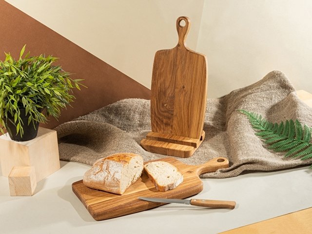 Набор от Eat&Bite состоит из двух разделочных досок из натурального дуба, а также подставки для них. Доски обработаны пищевым маслом, которое не дает древесине растрескаться и помогает поддерживать свежий вид.