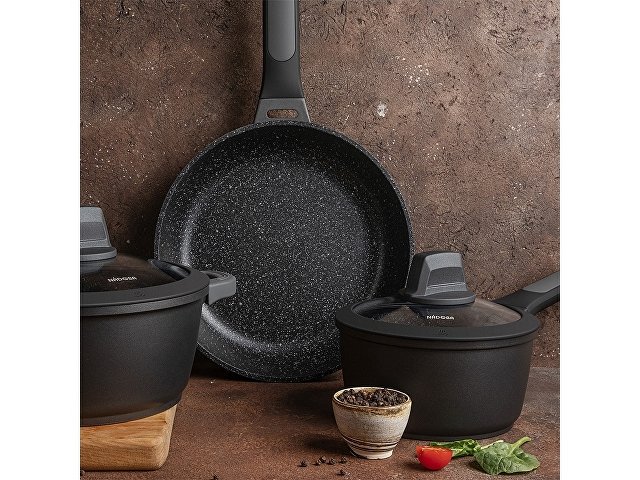 - Ручки выполнены из материалов, предотвращающих их выскальзывание из рук, и не нагреваются. Съёмные силиконовые накладки на ручки позволяют использовать кастрюлю и сотейник в духовке.