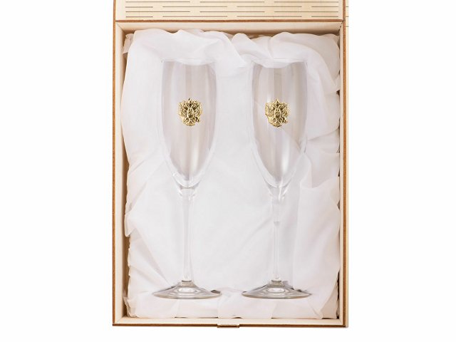 Набор бокалов для шампанского. Благородное флорентийское стекло прекрасно смотрится с российским гербом. Именно так итальянцы решили выразить свою любовь к России. |