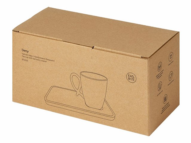 Бамбуковое блюдце имеет выемку для чашки, поэтому Deny можно аккуратно разместить на столе, не занимая много места. Также на блюдце удобно класть пирожные, шоколад или печенье благодаря его прямоугольной форме.
