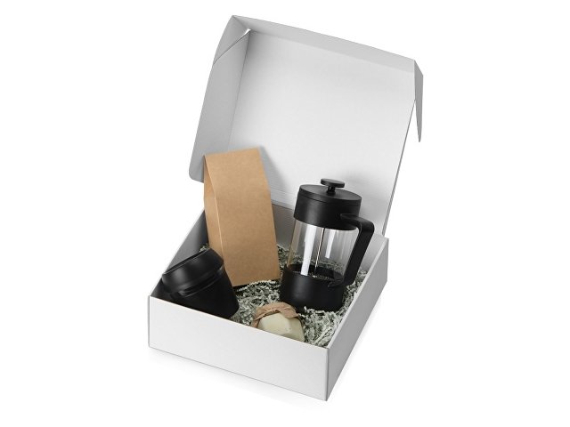 Набор Бодрое утро содержит все необходимое для действительно приятного пробуждения. В нем вы найдете все, что нужно для приготовления вашей первой чашечки кофе с утра: френч-пресс, упаковку робусты темной обжарки, стакан с силиконовыми деталями и баночку крем-меда, который составит прекрасную пару крепкому напитку. Набор упакован в белую картонную коробку и переложен бумажным наполнителем. |