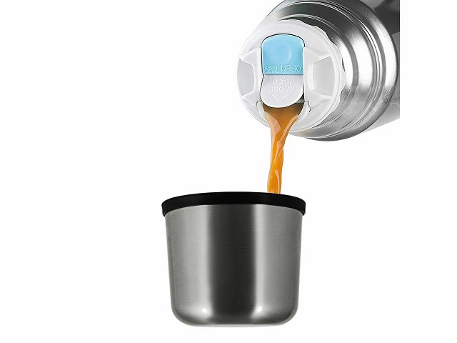 Удобная пробка клапанного типа легко отрывается одним нажатием, поэтому из термоса можно пить или наливать напиток в крышку-чашку, не выкручивая пробку. На верхней части пробки предусмотрены указатели открыто/закрыто (OPEN/CLOSE). Пробка полностью разбирается для тщательного очищения.