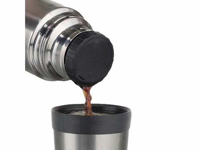Термос удобен в использовании благодаря винтовой пробке с внутренними направляющими пазами – её можно не выкручивать полностью при наливании напитка в крышку-чашку, минимизируя тем самым влияние температуры окружающей среды на содержимое термоса. На верхней части пробки предусмотрены указатели потока жидкости.