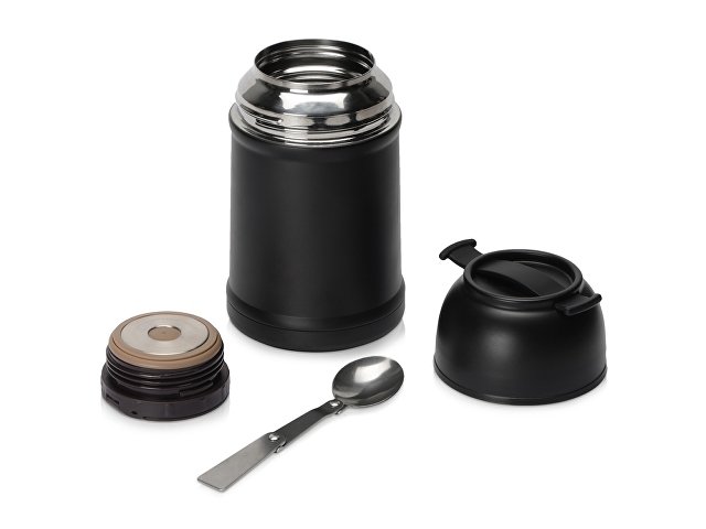 Обратите внимание на детали, кажущиеся не такими важными, но при этом облегчающие пользование термосом: силиконовые вставка на дне против скольжения и хлястик для удобной переноски и крепления внутри рюкзака, а также раскладывающуюся ложку из пищевой стали, которая прячется под крышкой термоса.