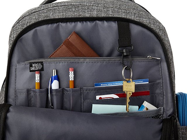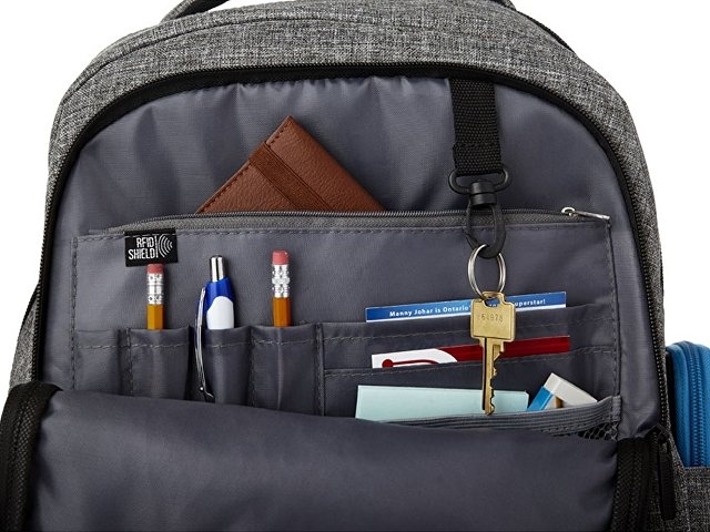 Рюкзак Vault для ноутбука 15.6 с защитой RFID. Изящный, современный рюкзак для ноутбука 15,6 с большим передним карманом на молнии с карабином для ключей, и скрытым карманом с защитой RFID, чтобы защитить ваши карточки и паспорт от кражи личных данных. Большое основное отделение вмещает ноутбук 15,6 и специальный карман для IPad или планшета. Плотная спинка. Передняя вертикальная молния разработана, чтобы дать вам быстрый доступ к переднему карману. 2 дополнительных боковых кармана для большего места, регулируемые, мягкие ремни рюкзака позволят прикрепить к ним дополнительные аксессуары. Ручка вверху и стропа для крепления к чемодану. 600D полиэстер с акцентами из ПУ винила. |