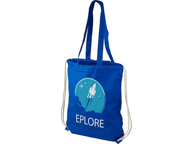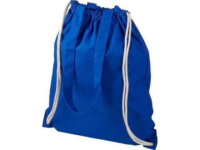 Многофункциональный хлопчатобумажный мешок с длинными ручками и затягивающим шнурком, который можно носить в качестве сумки для покупок или рюкзака. Большой основной отсек, закрывающийся затяжкой шнурка. Имеет две выпадающие ручки длиной 31 см. Вместимость: 16 л, выдерживает до 5 кг веса. Хлопок, 240 g/m2. |