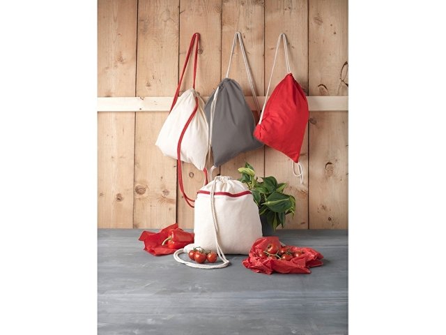 Большое основное отделение затягивается хлопковым шнурком. Прочность до 5 кг. |