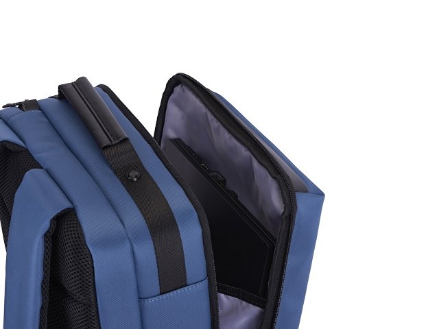 Рюкзак может легко превратится в деловую сумку для командировок, т.к. снабжен дополнительной ручкой для переноски в руке. В комплекте идет съемный металлический шильд под нанесение вашего логотипа.