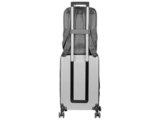 Бизнес-рюкзак из плотной ткани, хорошо держащий форму, имеет строгий и стильный дизайн. Внутри 2 отделения - для ноутбука и для одежды с органайзером и внутренним карманом на молнии. Снаружи расположено большое отделение на молнии. Рюкзак удобен для поездок, при этом компактен и оснащен ремнем для крепления к чемодану. В комплекте нетканый мешок для хранения и съемный металлический шильд для нанесения вашего логотипа. |