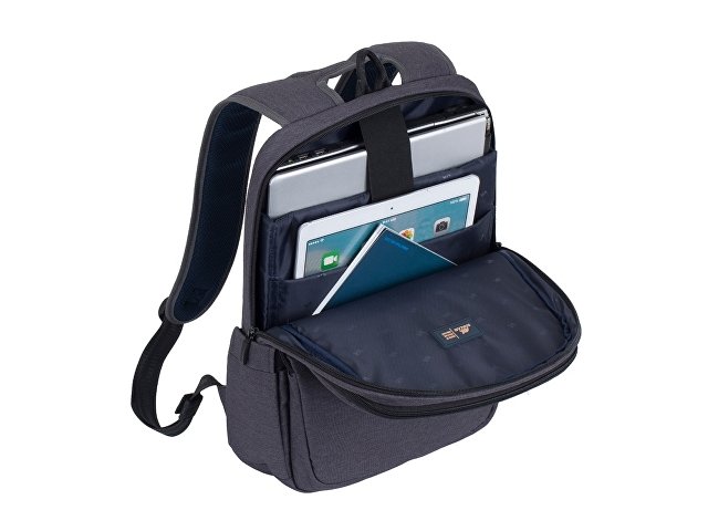 • Основное отделение для ноутбука с вертикальной загрузкой, имеет мягкие стенки и ремень для надежной фиксации ноутбука до 15.6''.