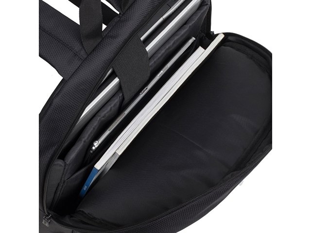 • Основное отделение для ноутбука с вертикальной загрузкой, имеет мягкие стенки и ремень для надежной фиксации ноутбука до 15.6.