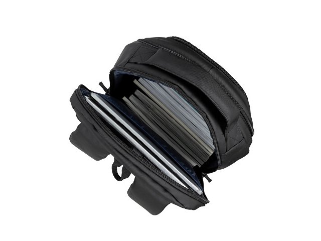 • Основное отделение для ноутбука с вертикальной загрузкой имеет мягкие стенки для надежной фиксации ноутбука до 15.6 и просторную секцию для хранения необходимых вещей и документов.