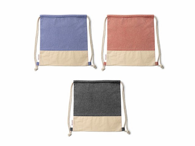 Рюкзак-мешок из переработанного хлопка с отделкой из натурального хлопка плотностью 120 г/м?. |