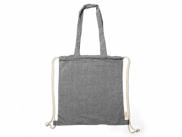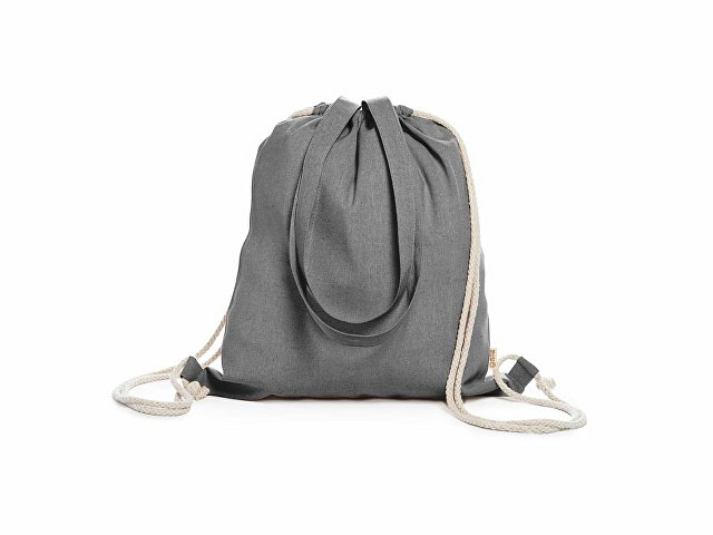 Рюкзак-мешок из переработанного хлопка плотностью 140 г/м? с меланжевой отделкой, ручками длиной 70 см в тон и шнурками натурального цвета. |