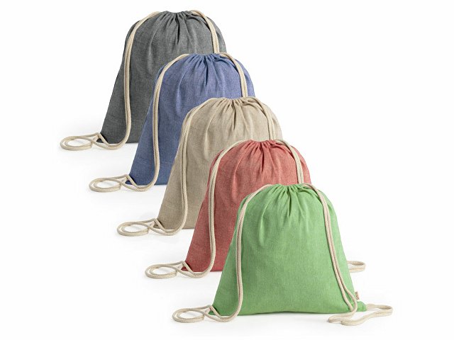 Рюкзак-мешок из переработанного хлопка плотностью 120 г/м? с меланжевой отделкой и шнурками натурального цвета. Доступен в различных цветах. |
