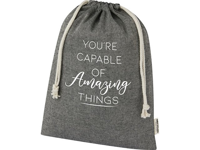 Подарочная сумка из хлопка, переработанного по стандарту GRS, с хлопковым шнурком для затягивания. Идеально подходит для подарков или хранения предметов. Размер: 30 x 42 см. |
