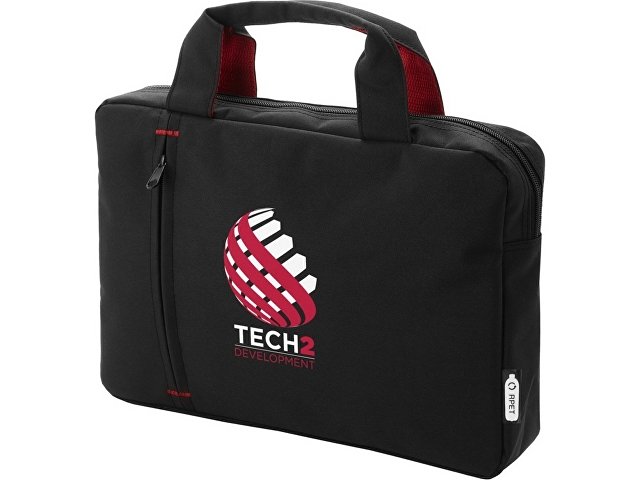 Сумка для конференций из переработанного РЕТ-пластика с основным отделением с застежкой-молнией и передним карманом на молнии, усиленными верхними ручками и модными элементами контрастного цвета. |