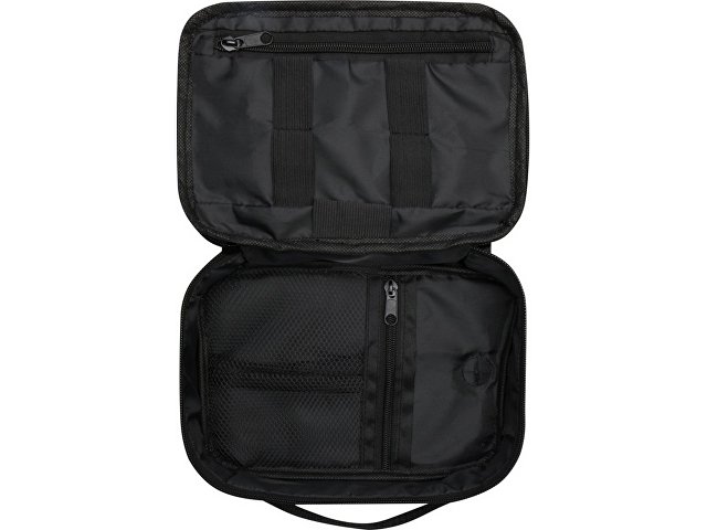 Сумка для техники Ross из переработанного ПЭТ, соответствующего стандарту GRS, идеально подходит для людей, постоянно находящихся в пути, и позволяет организовывать портативные зарядные устройства, зарядные кабели или любые другие электронные аксессуары. Имеет несколько карманов, эластичных петель и вставок для протягивания кабелей, позволяющих заряжать телефон, храня портативное зарядное устройство в сумке. Также имеет пластиковый карабин для крепления к другой сумке. Емкость: 1 литров. 300DGRS certified recycled polyester. |