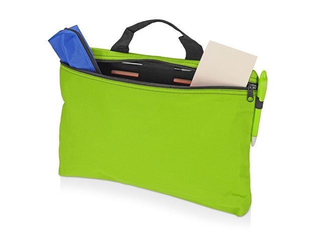 Сумка для конференций с ручкой, застежкой на молнии и держателями для ручек снаружи и внутри сумки. Подходит для документов формата А4. |