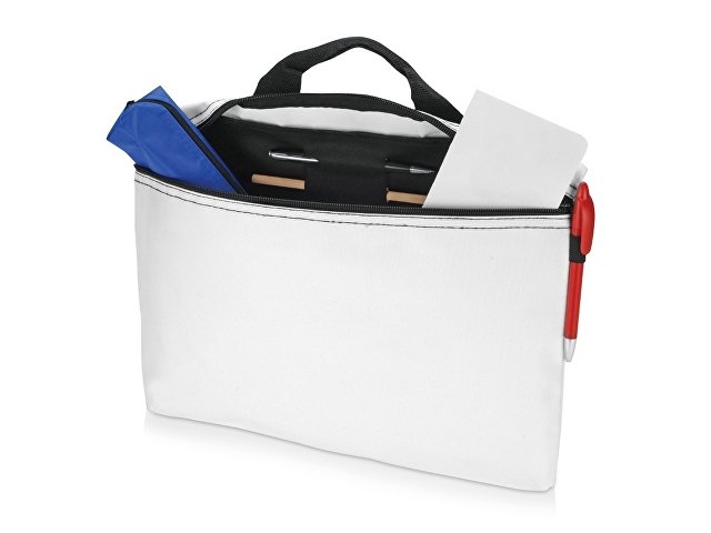 Сумка для конференций с ручкой, застежкой на молнии и держателями для ручек снаружи и внутри сумки. Подходит для документов формата А4. |