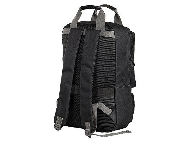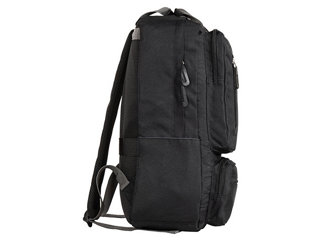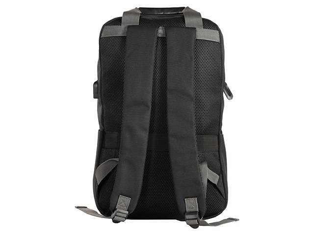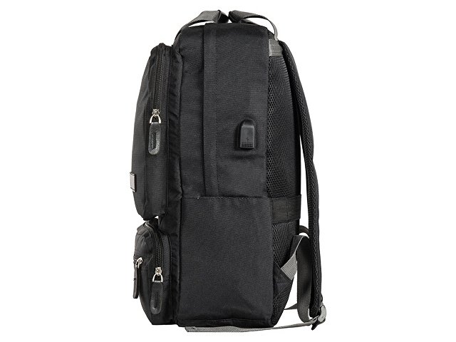 Описание: Рюкзак, в котором можно разместить все необходимое: - 2 наружных отделения на молнии, каждое из которых имеет карман на молнии, - 2 боковых кармана, - внутри органайзер, - отделение для ноутбука, - USB разъем, - сетчатая спинка, - 2 ручки вверху для большего удобства, - карабин для ключей внутри, - отделка из искусственной кожи на наружном кармане и на бегунках