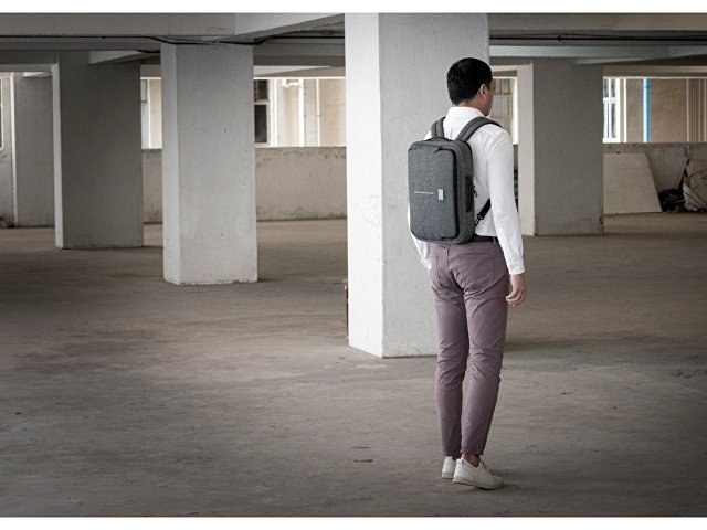 Рюкзак легко трансформируется в сумку для деловых поездок. Отстегивающиеся лямки можно спрятать в карман на молнии на спине. В комплекте 2 шильда под нанесение: металлический и из искусственной кожи.