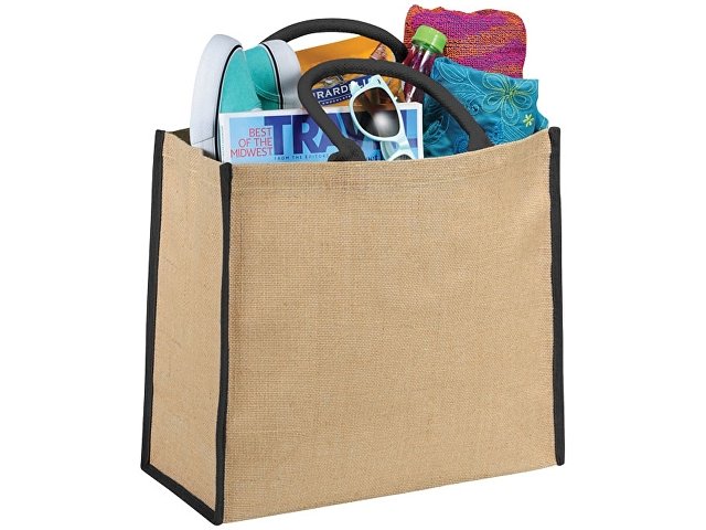 Сумка для покупок. Открытое основное отделение на липучке. Двойные ручки высотой 17 см. Джут. |