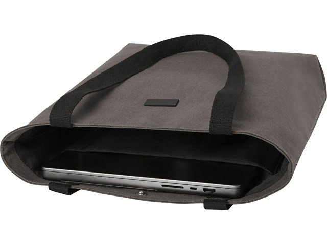 Эко-сумка изготовлена из переработанного холста, сертифицированного по стандарту GRS, и имеет подкладку из переработанного ПЭТ-пластика, сертифицированного по стандарту GRS. Универсальная эко-сумка имеет мягкое отделение для ноутбука с диагональю 15 дюймов и два карманных рукава внутри для телефона, кошелька или аксессуаров, а также удобную застежку на кнопке для открытия и удобные плетеные ручки из хлопка. Декоративная металлическая пластина может придать логотипу сияние благодаря утонченному матовому покрытию. |