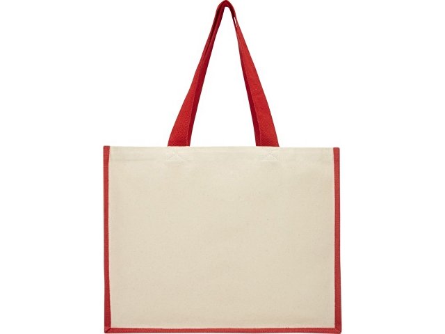 Модная сумка для покупок с боковыми панелями (вес 320 г/м?), подходящими для нанесения изображений, окантовкой из ламинированного джута и хлопковыми ручками. |