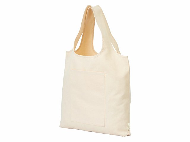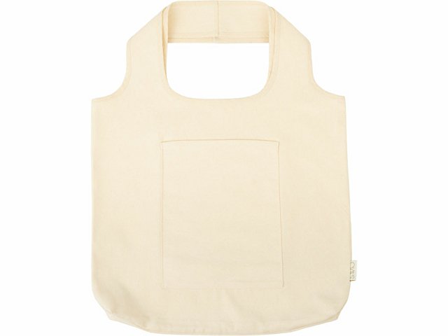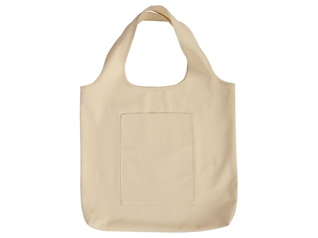 Вместительная сумка-шоппер из очень плотного переработанного хлопка с широкими лямками и большим наружным карманом 20 x 25 см спереди. |