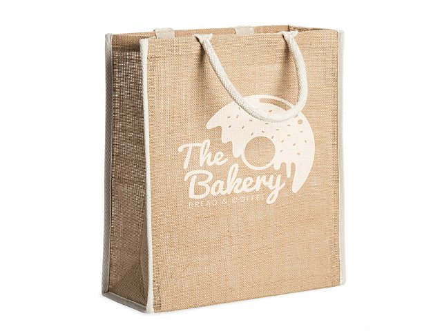 Сумка из натурального джута с отделкой и усиленными хлопковыми ручками. |