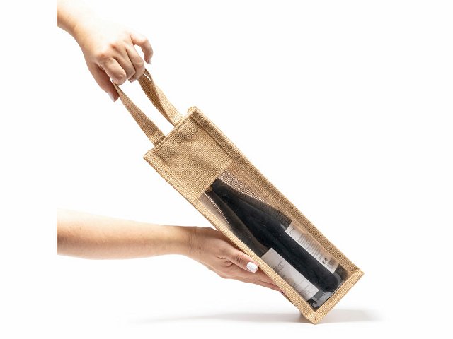 Сумка из ламинированного джута с окошком. Усиленные ручки. Идеально подходит для бутылок. |