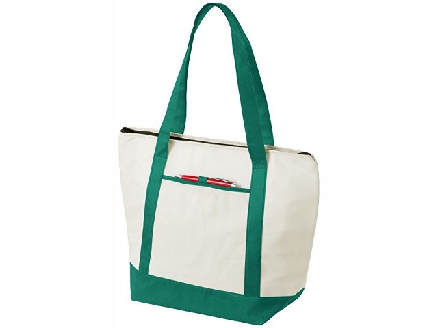 Нетканая сумка-холодильник Lighthouse. Основное отделение на молнии с двойными ручками. Высота ручек 23,5 см. Открытый передний карман с держателем для ручки. Аксессуары не включены. Нетканый полипропилен 80 г/м?. |