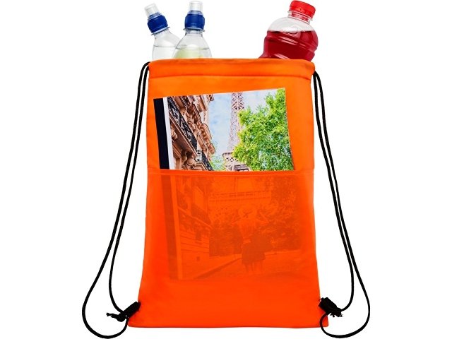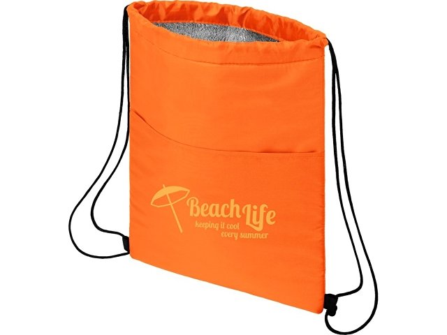 Сумка-холодильник затягивается на шнурок черного цвета. С открытым передним карманом. Вмещает 12 банок. Прочность до 5 кг. |