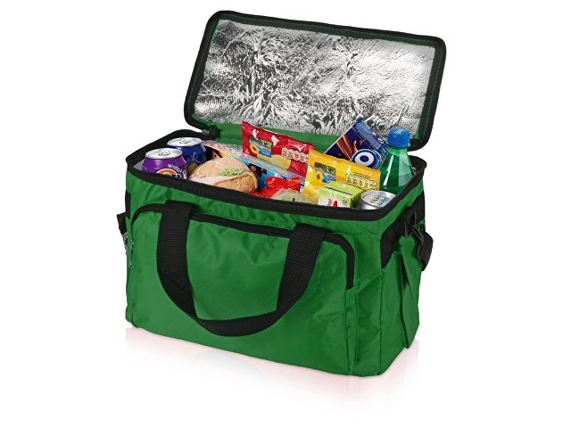 Вместительная сумка-холодильник (объем – 15 л.) Камайоре прекрасно подойдет не только для индивидуальных пикников, но даже и для доставки горячих продуктов (пиццы, например). С боков 2 кармана – один сетчатый с регулируемой затяжкой для бутылки. Другой для приборов, салфеток или других мелочей закрывается на липучку. Наружный слой сделан из полиэстера, на него может быть нанесена персонализация: имя владельца или логотип компании. |