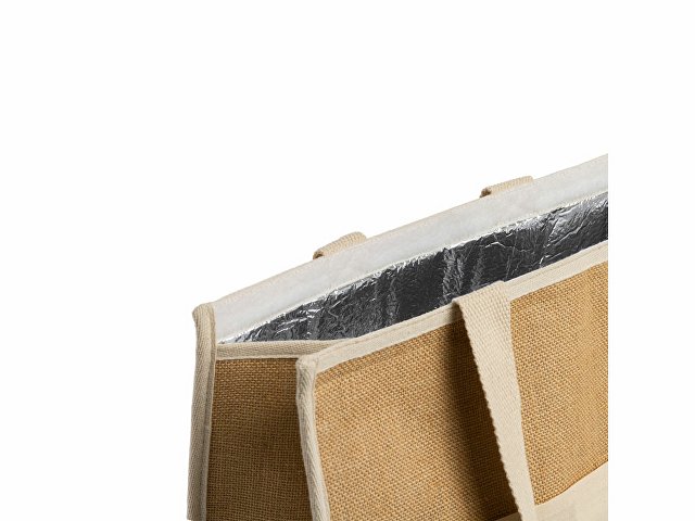 Сумка-холодильник из ламинированного джута. Изотермическая алюминиевая подкладка и застежка на липучке. Держите напитки и еду при соответствующей температуре. Передний карман и ручки из натурального хлопка. |
