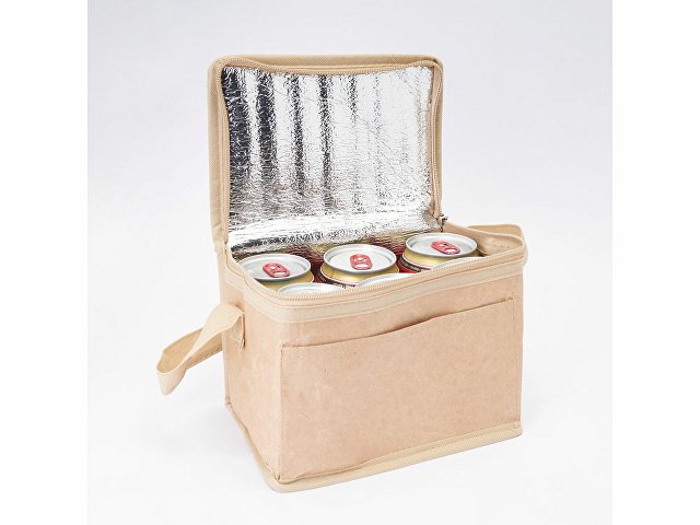 Сумка-холодильник из ламинированной крафт-бумаги с изотермической алюминиевой подкладкой и изоляционной пеной толщиной 2 мм. Ручка длиной 60 см и емкостью 3 литра (6 банок). Клапан с застежкой-молнией и практичной ручкой для переноски. |