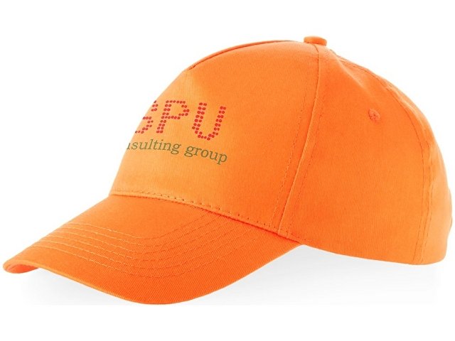 Отличная бейсболка из 5 панелей защитит от солнца. 5-ти панельная бейсболка выполнена из прочного хлопкового твила 230гр. Индивидуальный принт можно создать вышивкой либо при помощи термотрансфера. |